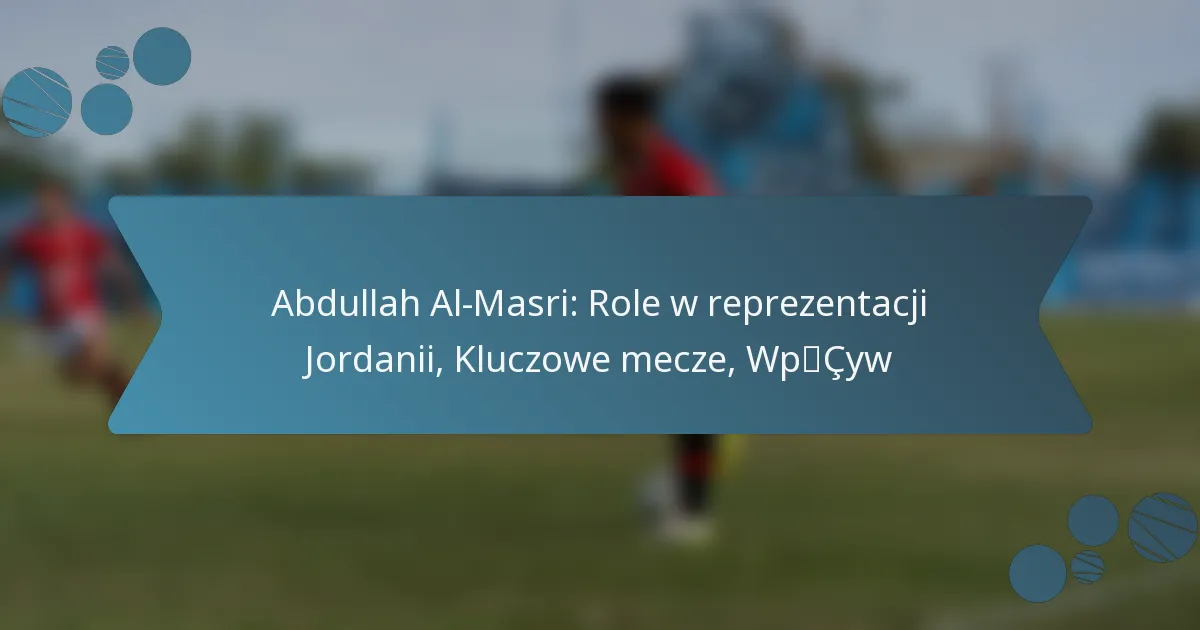 Abdullah Al-Masri stał się kluczowym zawodnikiem reprezentacji Jordanii w piłce nożnej, pokazując swoją wszechstronność w rolach pomocnika i obrońcy. Jego taktyczna świadomość i wpływowe występy w kluczowych meczach nie tylko podniosły jego osobisty status, ale także znacząco przyczyniły się do sukcesu drużyny na międzynarodowej arenie.